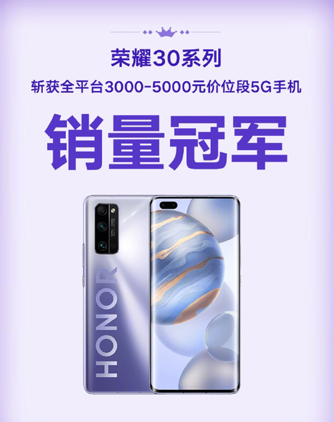 作為唯一受邀參與直播的國(guó)產(chǎn)手機(jī)品牌,而且這次還是央視網(wǎng)官媒站臺(tái),可見(jiàn)榮耀30系列的品質(zhì)備受認(rèn)可。作為“中國(guó)制造”的杰出代表之一,榮耀30系列不但獲得了央視和其它品牌領(lǐng)袖的認(rèn)可,而且在消費(fèi)者當(dāng)中也廣受好評(píng)和追捧。根據(jù)榮耀官方的618戰(zhàn)報(bào)信息,截至6月7日23:59,榮耀手機(jī)蟬聯(lián)全平臺(tái)累計(jì)手機(jī)銷(xiāo)量冠軍,而榮耀30系列在6.1-6.3日連續(xù)斬獲618全平臺(tái)3000—5000元價(jià)位段5G手機(jī)銷(xiāo)量冠軍,成績(jī)斐然。