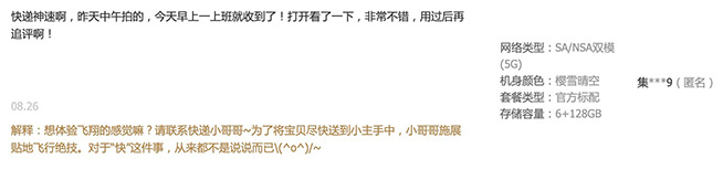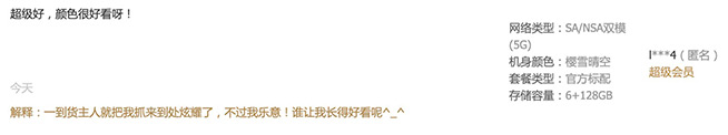 8月下旬,華為暢享20 Pro櫻雪晴空在線上線下全平臺(tái)上市銷售。從電商平臺(tái)的用戶評(píng)價(jià)來(lái)看,已經(jīng)有不少消費(fèi)者陸續(xù)上手這款新配色,并且給出了蠻高的評(píng)價(jià)。就消費(fèi)者反饋的信息來(lái)看,選擇華為暢享20 Pro櫻雪晴空的朋友大都是被新配色的高顏值所吸引,有網(wǎng)友表示“超級(jí)好,顏色很好看呀”,還有的朋友稱“打開看了一下,非常不錯(cuò)”。