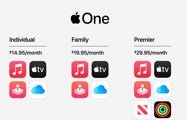 除了亮眼的“三雙”以外,此次蘋果發(fā)布會還推出了Apple One服務(wù),相當于將Music、News、iCloud存儲空間、TV等付費服務(wù)打包價提供給用戶,共有三檔組合,在美國本土的月費為14.95美元起步,約合人民幣100元左右。需要指出的是,由于TV、News等服務(wù)仍未在中國大陸正式運營,因此Apple One短期內(nèi)可能不會與國內(nèi)的用戶見面,即便有估計也是閹割版本。