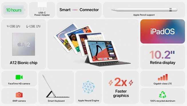 第二個“雙”則是兩款新iPad,分別是使新款iPad Air(iPad Air 4)和iPad 8,上市均將搭載iPadOS 14系統(tǒng)。新款iPad Air擁有多達5款配色,包括新增的綠色和天空藍,4799元起,256GB版為5999元,如果需要LTE功能(4G)的話則要加1000元,分別是5799元和6999元。
