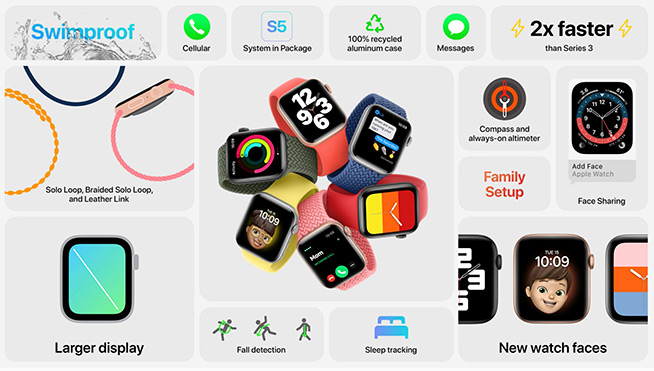 第三個“雙”是Watch家族的兩名新成員,分別是Apple Watch 6和Apple Watch SE。Apple Watch 6相比上代產(chǎn)品主要提升了芯片的性能,并增加了藍色與紅色的鋁金屬表框顏色可選,當然繼續(xù)帶來了讓人眼花繚亂的新款表帶搭配,蘋果與愛馬仕以及耐克的定制款也同步得到升級。定價方面,國行版3199元起步,9月17日預(yù)購,9月20日正式上市。