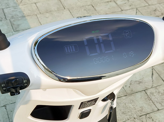 雅迪冠能M8提供多達(dá)7款配色選擇,堪比召喚神龍,相信總有一款顏色能夠滿(mǎn)足你。我們?cè)u(píng)測(cè)的是白色,官方稱(chēng)之為“新塔夫綢白”,字面上理解有點(diǎn)深?yuàn)W,若換成接地氣的說(shuō)法,筆者認(rèn)為這是優(yōu)雅而又經(jīng)久耐看的白。