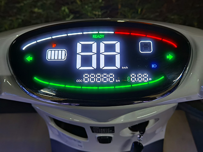 儀表盤(pán)方面,雅迪冠能M8采用全面屏TTFAR電能監(jiān)測(cè)儀表,超寬10寸儀表屏可清晰顯示里程、速度、檔位、車(chē)燈狀態(tài)等車(chē)輛信息,根據(jù)實(shí)測(cè),雅迪冠能M8的全面屏儀表盤(pán)在絕大部分環(huán)境中都能清晰顯示,筆者表示這樣的大屏非常實(shí)用,建議更多雅迪電動(dòng)車(chē)可以實(shí)現(xiàn)普及。另外若能加入時(shí)間、精確的剩余電量百分比等實(shí)用的信息顯示就更好了。