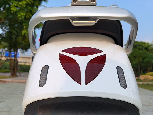 車(chē)燈方面,雅迪冠能M8尾部有標(biāo)志性的雅迪基因尾燈,前方則是LED三透鏡大燈以及左右轉(zhuǎn)向燈,配合LED側(cè)邊條燈,提供360°安全燈光系統(tǒng),能為夜間行車(chē)提供更安全保障。