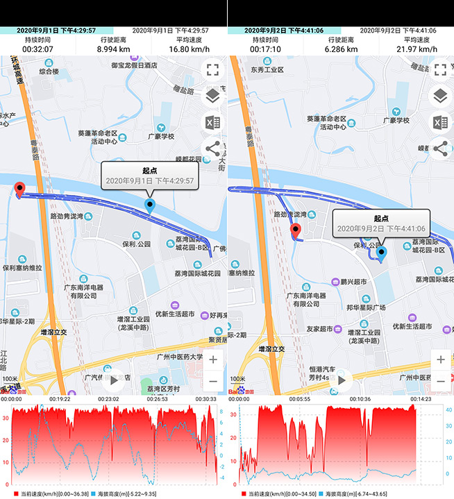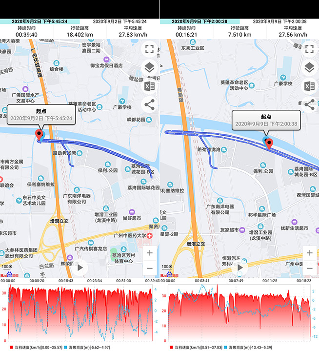 這5次有針對(duì)性的路測(cè)均同步使用手機(jī)App監(jiān)測(cè)記錄數(shù)據(jù),總騎行里程接近72公里,詳細(xì)的監(jiān)測(cè)數(shù)據(jù)參考截圖信息。至于沒(méi)有使用App監(jiān)測(cè)的幾次路測(cè),既有在車(chē)輛較多的擁堵路段騎行,也有路況復(fù)雜、走走停停的時(shí)候。