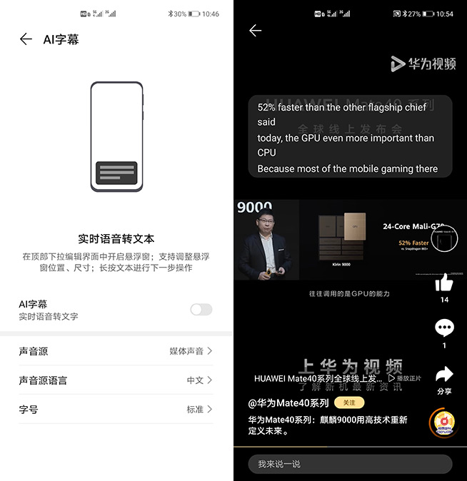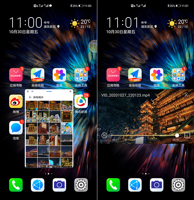 說到EMUI 11系統(tǒng),最初的體驗(yàn)是變化不太多,但一段時(shí)間用下來會(huì)察覺不少細(xì)節(jié)都有完善或加強(qiáng)。比如說浮窗顯示,新增支持多個(gè)小窗快速切換,也能靈活調(diào)整浮窗大?。粓D庫播放本地視頻的時(shí)候,雙指縮放可放大或縮小畫面,是久違的體驗(yàn)升級(jí);AI字幕的出現(xiàn),則成為輕松理解外文內(nèi)容的新利器。