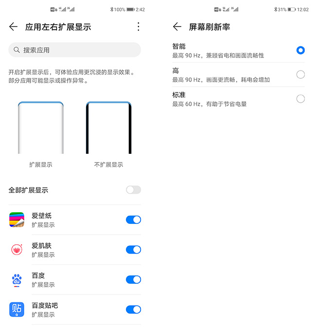 延伸至手機(jī)兩側(cè)的88°超曲環(huán)幕屏,無疑是整機(jī)顏值的加分項(xiàng),而Mate40 Pro在繼續(xù)拉風(fēng)的同時(shí),充分考慮到了操作與體驗(yàn)的包容性。實(shí)體音量鍵的回歸照顧到了傳統(tǒng)操作習(xí)慣,當(dāng)然用戶依然可以在屏幕曲面的兩側(cè)雙擊,快速調(diào)出音量設(shè)置滑塊并進(jìn)行調(diào)整。此外,顯示設(shè)置中可以對(duì)不同App設(shè)置是否啟用左右擴(kuò)展顯示,不習(xí)慣沉浸式效果的話也能回歸傳統(tǒng)平面顯示。