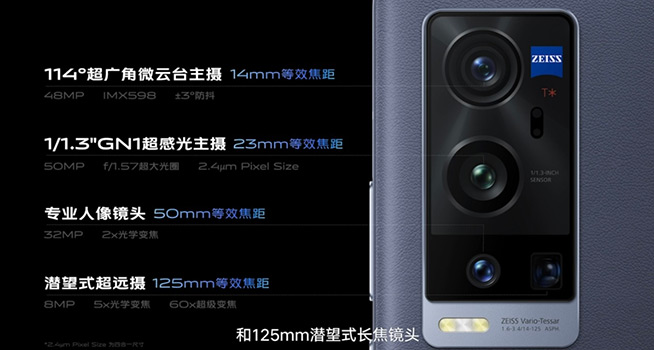 對(duì)比X60 Pro+和X50 Pro+的后置鏡頭可知,二者的主攝及人像鏡頭維持一致,5倍潛望式光學(xué)變焦鏡頭則從800萬(wàn)像素提升至1300萬(wàn)像素。而最大的改變來(lái)自超廣角,換成了4800萬(wàn)像素的索尼IMX598傳感器,不僅擁有4軸OIS防抖還加入了vivo特色的微云臺(tái)。針對(duì)性的升級(jí)過(guò)后,vivo官方描述X60 Pro+相機(jī)特色中出現(xiàn)了“雙主攝”的關(guān)鍵字,不知各位有沒(méi)有似曾相識(shí)?其實(shí)嘛,這正是華為Mate30 Pro首創(chuàng)的推廣詞。
