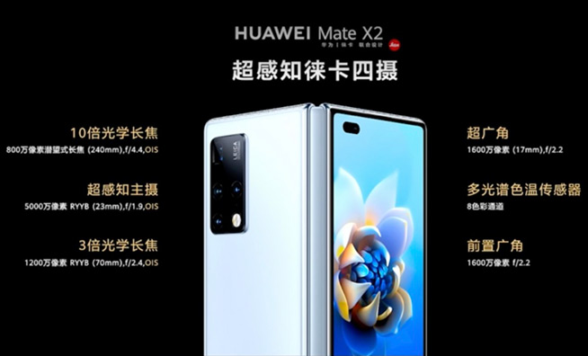 相機(jī)方面,華為Mate X2又一次達(dá)成在折疊屏機(jī)型中的領(lǐng)先。其配備超感知徠卡四攝,5000萬像素RYYB超感知主攝、10倍光學(xué)變焦的潛望式鏡頭,都是此前被多次驗(yàn)證過的行業(yè)領(lǐng)先水平。另外該機(jī)還支持2.5cm超近距離對焦,并配備3倍光學(xué)長焦和1600萬像素超廣角鏡頭,提供全時(shí)段全焦段的非凡攝影體驗(yàn)。