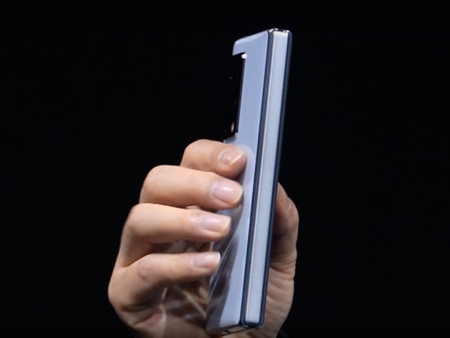 在內(nèi)折疊屏架構(gòu)的基礎(chǔ)上,華為Mate X2首創(chuàng)雙楔形一體設(shè)計(jì),折疊屏打開后手機(jī)從右到左逐漸變薄,最薄處僅4.4mm,比上一代Mate Xs更薄。雙楔形設(shè)計(jì)的Mate X2在折疊屏合上之后,上下完全平整,折疊的契合度更高,用不對稱創(chuàng)造新的平衡。