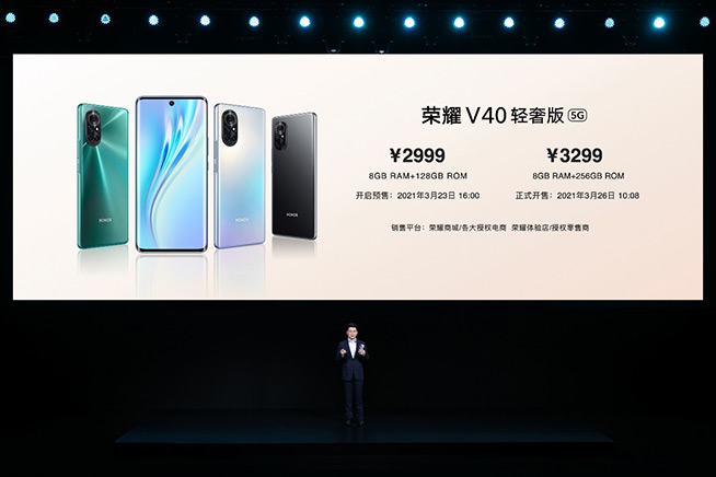 榮耀V40輕奢版提供8GB+128GB、8GB+256GB兩個(gè)內(nèi)存版本,售價(jià)分別為2999元和3299元。