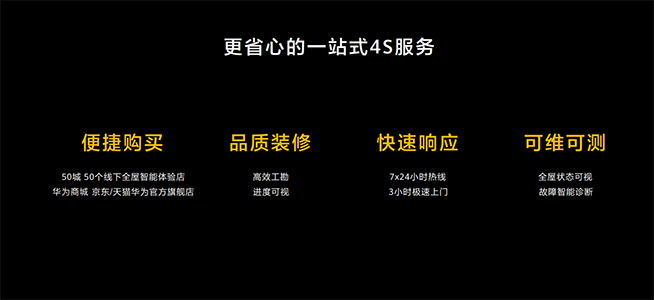 作為一套系統(tǒng)性可量產(chǎn)落地的實(shí)用方案,華為全屋智能提供了一站式4S服務(wù)。施工過程高效透明,消費(fèi)者在App上即可輕松查看,交房時(shí)NFC一碰交房,全屋配置輕松同步到手機(jī)上,更便捷,更有儀式感。同時(shí)配套售后和日常維護(hù),如某家電停止工作,系統(tǒng)會(huì)從插座、布線、開關(guān)等多方面分析,第一時(shí)間找到故障;針對客戶疑問提供7X24小時(shí)熱線服務(wù),遇到問題工程人員將會(huì)在3小時(shí)內(nèi)上門解決,一站式服務(wù),為用戶解決后顧之憂。