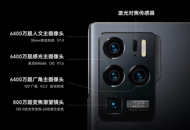 至于Axon 30 Ultra,則是三枚6400萬像素主攝,且配有激光對焦傳感器外加一枚800萬像素潛望式長焦鏡頭,這枚鏡頭可實現(xiàn)5倍光學(xué)變焦以及60倍混合變焦。比較特別的是三枚主攝中有一枚專用的“人文主攝”,為的帶來更專業(yè)的人像攝影效果,縱觀整個手機圈,這枚人像鏡頭的規(guī)格應(yīng)該是目前的佼佼者。當(dāng)然了,最終的出片效果以及使用體驗還得看整體的攝影算法,過往中興在這方面并非強項。