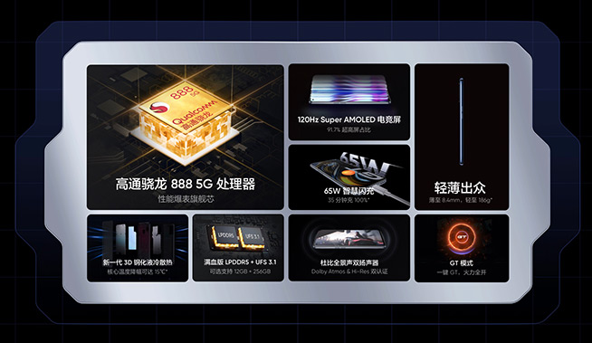 當(dāng)下主流手游畫(huà)面大都非常精美,動(dòng)效也各種炫,自然對(duì)手機(jī)性能提出了越來(lái)越高的要求。要更好駕馭極致畫(huà)質(zhì)和動(dòng)效、游戲全程不卡頓,很關(guān)鍵的一點(diǎn)是需要有旗艦級(jí)的SoC提供硬核性能支撐。真我GT搭載5納米先進(jìn)工藝制程的高通驍龍888移動(dòng)平臺(tái),是眼下安卓手機(jī)性能的金字塔尖,今年各大品牌的旗艦手機(jī)幾乎清一色標(biāo)配驍龍888便是其優(yōu)異性能的最好背書(shū)。