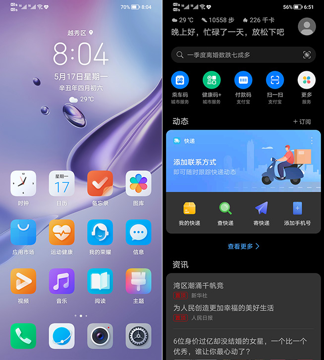 AOD滅屏顯示與屏內(nèi)指紋解鎖,作為OLED屏幕特有的體驗進(jìn)階,自然也出現(xiàn)在榮耀Play5身上,不過美中不足的是高刷屏的缺席。
