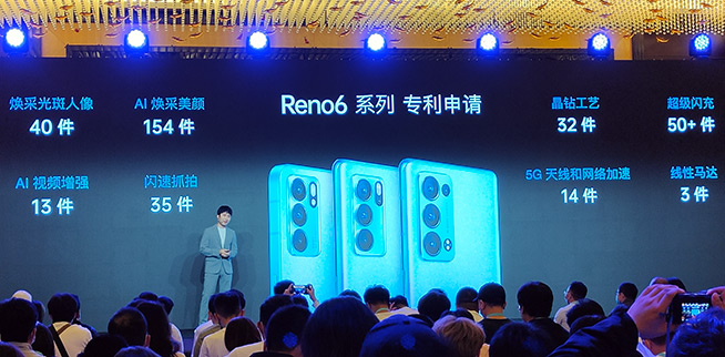 說(shuō)起專(zhuān)利,不說(shuō)不知道,Reno6系列在煥彩光斑人像與AI煥彩美顏兩大功能領(lǐng)域,分別申請(qǐng)了40件和154件專(zhuān)利,二者相加接近200項(xiàng)專(zhuān)利,既是對(duì)OPPO在美顏相關(guān)技術(shù)儲(chǔ)備實(shí)力的肯定,又可以看出Reno6系列再次聚焦“煥彩美顏”的核心功能。