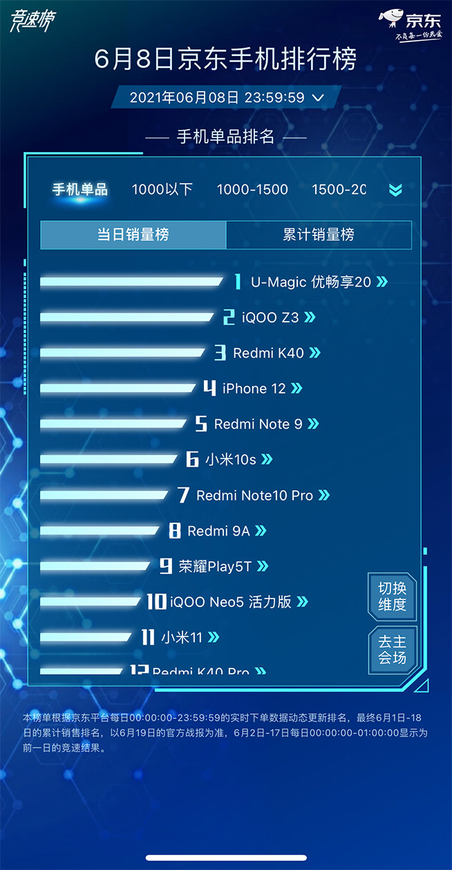 京東618提前進(jìn)入白熱化!U-MAGIC優(yōu)暢享20拿下手機(jī)類單日銷售冠軍