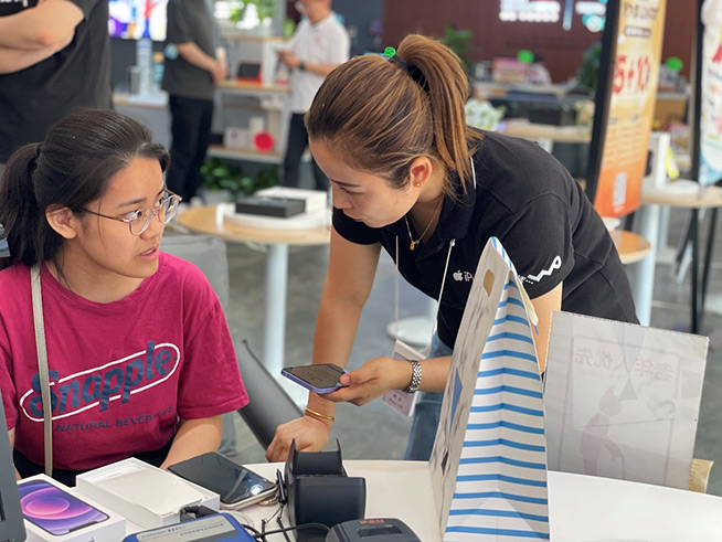 西安高新區(qū)營業(yè)廳是國內(nèi)第一家正式獲得蘋果公司授權(quán)認可的優(yōu)選體驗店,同時也是一家優(yōu)質(zhì)5G網(wǎng)絡(luò)+潮流熱銷產(chǎn)品的酷玩好店,開業(yè)當天,現(xiàn)場吸引不少用戶到店體驗、參觀和消費。在店內(nèi),用戶可以購買到蘋果全品類產(chǎn)品,體驗到新品嘗鮮、免費檢測、超值以舊換新、碎屏服務(wù)、專業(yè)咨詢等權(quán)益;當然,用戶還能在店內(nèi)辦理中國聯(lián)通5G合約,享受中國聯(lián)通高速5G網(wǎng)絡(luò),結(jié)合iPhone 12與聯(lián)通5G網(wǎng)絡(luò)相配合的節(jié)電配置,可實現(xiàn)手機在無高速上網(wǎng)需求時保持較低功耗,提升電池續(xù)航能力,讓用戶既能享受5G品質(zhì)、又不必擔(dān)心手機耗電問題。