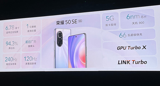 至于榮耀50 SE,為直邊直屏設(shè)計(jì),屏占比達(dá)到94.3%,有三款配色可選,選用MTK天璣900 5G芯片,支持66W超級(jí)快充,后置1億像素三攝。榮耀50 SE有兩個(gè)配置版本,8GB+128GB為2399元、8GB+256GB為2699元,7月2日上市。