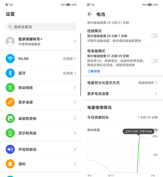 由于超曲面屏將顯示畫面延伸至屏幕兩側(cè),榮耀50實現(xiàn)了超高屏占比的視覺沉浸感,而曲面屏還有一大好處便是有利于產(chǎn)品做得更輕薄。事實上,評測人員上手榮耀50真機的第一感覺便是挺輕巧,約175g重、7.78mm厚的體型,日常單手長時間操作不易累,即便是放入緊身褲的褲袋中也很輕松。難得可貴的是,榮耀50的輕薄特性是在沒有犧牲屏幕尺寸和電池容量的前提下獲得的,其配備的是6.57英寸大屏以及4300mAh(典型值)大電池。
