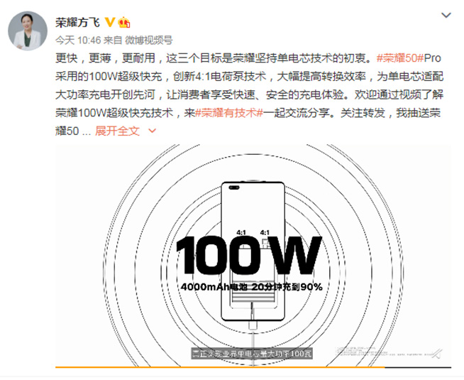 榮耀50系列全系單電芯設(shè)計(jì)!榮耀方飛:為消費(fèi)者帶來(lái)極致充電體驗(yàn)