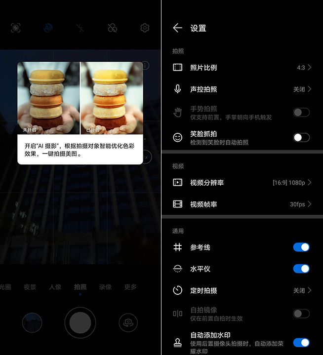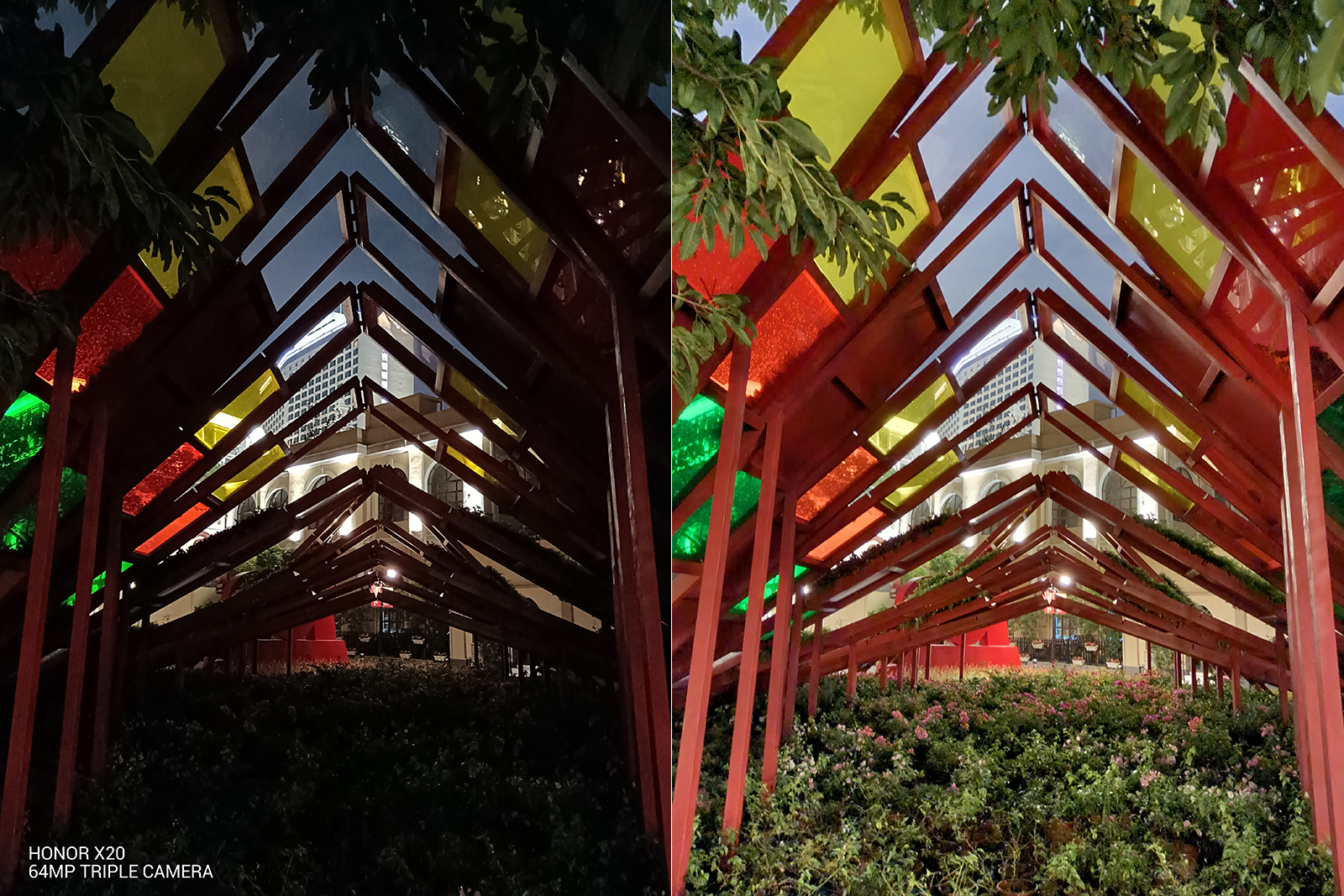 (榮耀X20樣張,左為自動模式,右為夜景模式)