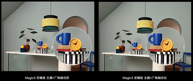 彩色主攝+超廣角融合,讓廣角畫質更清晰:如今超廣角鏡頭近乎成為智能手機的標配,但超廣角鏡頭在拍攝時也面臨著畫幅更大、尺寸更小的“窘境”。在相同畫幅下,超廣角鏡頭的有效像素點數(shù)較少,從而影響了畫面的細節(jié)呈現(xiàn)。榮耀Magic3和榮耀Magic3 Pro搭載1300萬超廣角鏡頭、榮耀Magic3至臻版采用業(yè)界分辨率最高的6400萬超廣角鏡頭。在保證超大規(guī)格配置時,榮耀Magic3系列進一步帶來彩色主攝+超廣角相融合方案,將彩色主攝獲取的信息,填充像素中間部分細節(jié),突破傳感器局限,用算力換畫質,使畫面中心清晰度最大提升80%,從而增強超廣角照片畫質。為了避免融合后圖像中心清晰度到邊緣的生硬過渡,榮耀Magic3系列智能平滑算法,可以智能調節(jié)平滑區(qū)域,讓融合后的照片看起來顯得渾然一體。