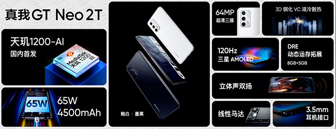真我GT Neo2T為國(guó)內(nèi)首發(fā)商用的天璣1200-AI芯片機(jī)型,專門(mén)提升了AI表現(xiàn),為其在諸如夜景拍攝等場(chǎng)景下帶來(lái)更高效表現(xiàn)。該機(jī)采用4500mAh電池與65W智慧閃充的組合,35分鐘即可充至100%,值得一提的是,3.5mm耳機(jī)也得以保留,立體聲雙揚(yáng)聲器和線性馬達(dá)同樣安排上了。