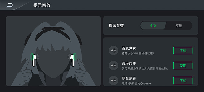 目前黑鯊鳳鳴真無線藍(lán)牙耳機(jī)提示音效可選中文或英文,中文列表下還有百變少女、高冷女神、嗲音蘿莉等10款風(fēng)格各異的語音包,玩家不妨逐一體驗(yàn)后再做選擇。據(jù)悉,后續(xù)通過耳機(jī)固件的OTA,黑鯊鳳鳴真無線藍(lán)牙耳機(jī)還會支持更豐富的語音包。