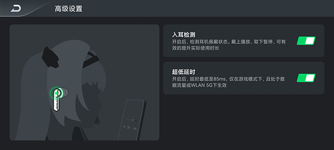 實(shí)測環(huán)節(jié),我們選擇黑鯊4S和黑鯊鳳鳴真無線藍(lán)牙耳機(jī)連接。在游戲界面下,游戲空間會建議用戶關(guān)閉DTS模式(延遲較大),在音頻設(shè)置中可快速啟用低延遲音頻,用戶也可以在耳機(jī)上長按觸控區(qū)切換至游戲模式,此時會有語音進(jìn)行確認(rèn)。