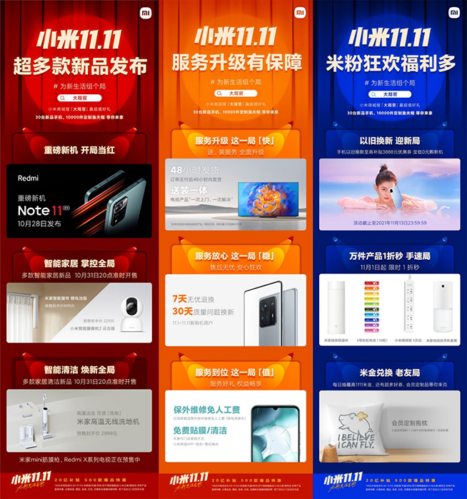同時(shí),小米11.11期間除了小米手機(jī)、電視、智能生態(tài)會(huì)有超多款新品發(fā)布以及大額補(bǔ)貼福利外,新品預(yù)售期每天還會(huì)抽送定制品,11月1日正式開(kāi)啟后還有萬(wàn)件好物限時(shí)一折秒、整點(diǎn)搶最高1111元紅包等重磅驚喜。除此之外,小米服務(wù)也全面升級(jí):現(xiàn)貨訂單下單后48小時(shí)內(nèi)發(fā)貨、購(gòu)買(mǎi)手機(jī)售后無(wú)憂(yōu),7天無(wú)憂(yōu)退換、30天質(zhì)量問(wèn)題煥新,電視產(chǎn)品送裝服務(wù)一體“一次上門(mén),一次解決”... ...