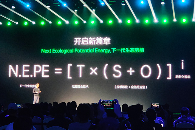 正在到來(lái)的萬(wàn)物互融時(shí)代,OPPO研究院院長(zhǎng)劉暢認(rèn)為會(huì)演變?yōu)椤耙匀藶橹行?,服?wù)泛在”,終端數(shù)量和種類越來(lái)越多,數(shù)據(jù)也會(huì)膨脹,既需要終端的升級(jí),也對(duì)開(kāi)發(fā)者與平臺(tái)提出更高更全面的要求。在這種背景下,OPPO提出下一代生態(tài)勢(shì)能公式N.E.PE=[T ( S + O )] i(Next Ecological Potential Energy,N.E.PE),更為具體的闡述開(kāi)發(fā)者和平臺(tái)共創(chuàng)共融的關(guān)系升級(jí)。