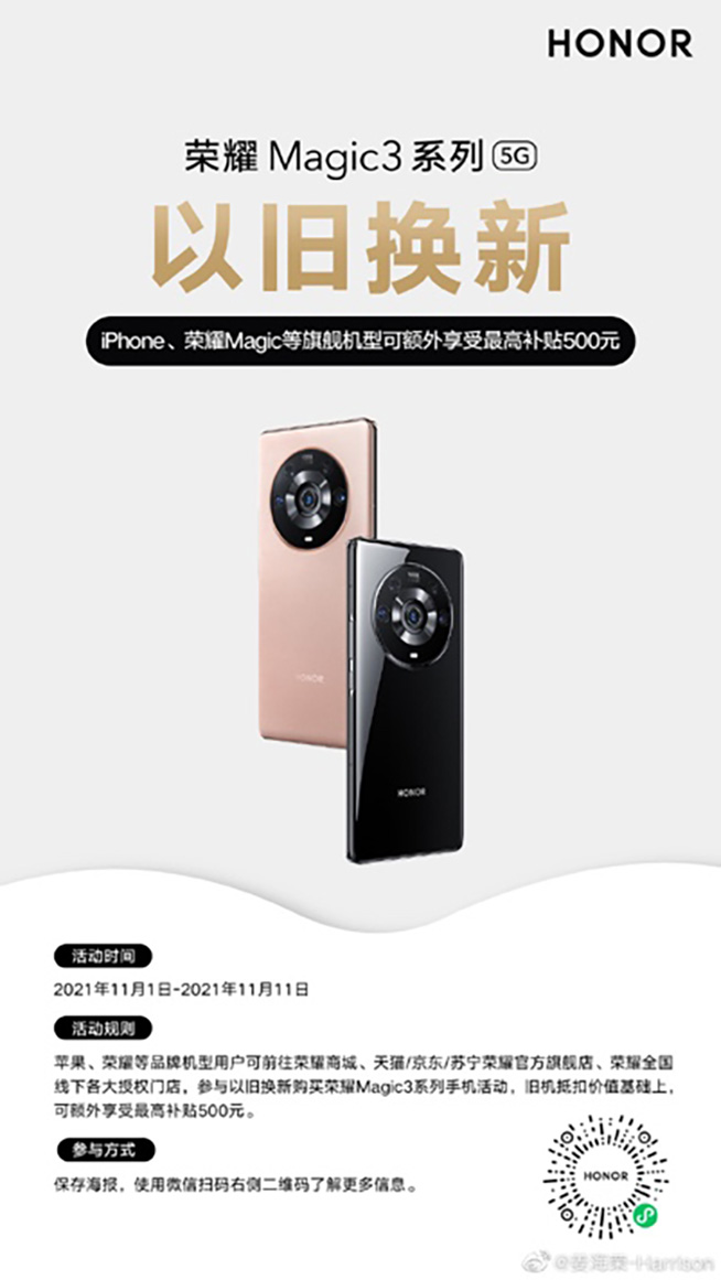雙11促銷優(yōu)惠活動(dòng)結(jié)合以舊換新,榮耀Magic3系列無(wú)疑更香了。