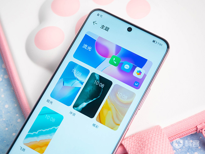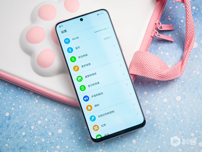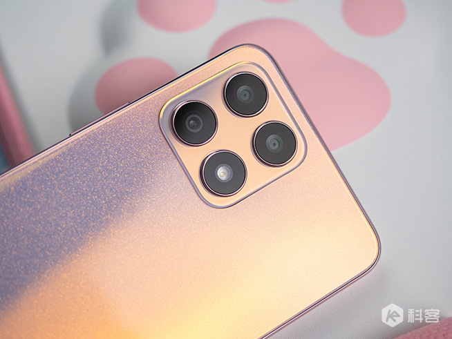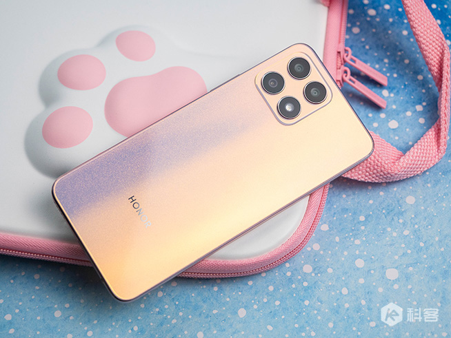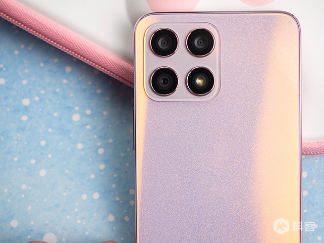 如果各位第一眼看到的是榮耀X30i的背面,相信許多朋友也會被其吸引,尤其是我們此次評測的薔薇金配色,解決了傳統(tǒng)粉色與金色不易搭的難題,融入鉆彩工藝處理的膜片之后,不同角度下欣賞會呈現(xiàn)不同的閃耀效果和色彩光影,年輕潮流的活力氣息因而增色不少。順便提一下,榮耀X30i共有四款配色可選,其中薔薇金和鈦空銀兩款亮色才擁有特別的鉆彩工藝。