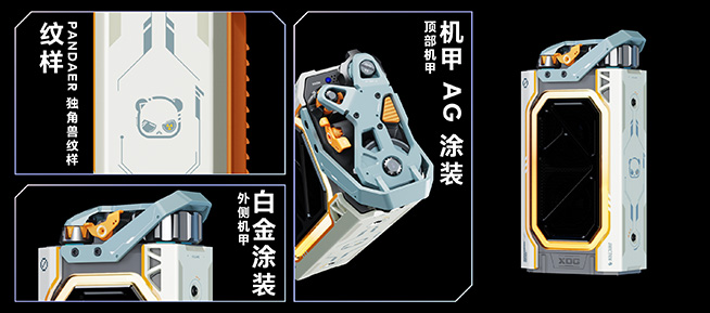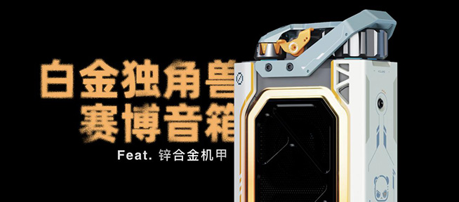 在外觀上,雙方設(shè)計(jì)師為白金獨(dú)角獸賽博音箱定制了一套兼具細(xì)膩與高亮質(zhì)感的白金涂裝;同時(shí),Metal 控制臺(tái)與環(huán)繞機(jī)身正面的 UNICORN Halo 光效系統(tǒng)以及機(jī)身 PANDAER 獨(dú)角獸紋樣,大幅提升整機(jī)質(zhì)感。