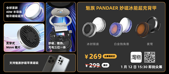 作為魅族首款“物理外掛”,魅族 PANDAER 妙磁冰能快充背甲系列不僅有著強(qiáng)悍的制冷散熱能力,還支持 10N 磁力的磁吸以及多品牌適配的無(wú)線快充功能。魅族 PANDAER 40W 妙磁冰能超充背甲即刻開(kāi)啟眾籌,眾籌價(jià) 269 元;15W 魅族 PANDAER 妙磁冰能閃充背甲售價(jià) 269 元,將于年后上線。