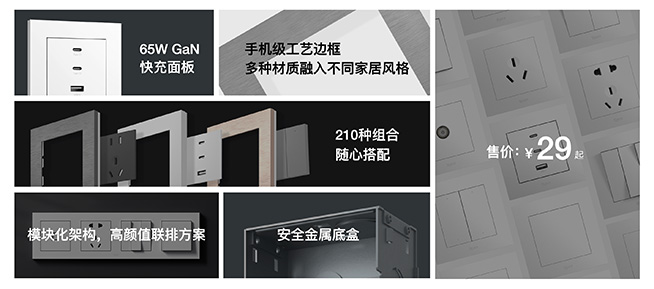 本次發(fā)布會(huì)上,lipro 也帶來(lái)了一款重磅產(chǎn)品——首次采用模塊化設(shè)計(jì)的 lipro 開(kāi)關(guān)面板,它能夠提供多達(dá) 210 種的模塊化定制選項(xiàng),在外觀上通過(guò)金屬、玻璃材質(zhì)的突破性融入,能夠與多種風(fēng)格家居環(huán)境的完美搭配;同時(shí),lipro 還提供二聯(lián)、三聯(lián)、四聯(lián)、五聯(lián)組合開(kāi)關(guān),以及業(yè)內(nèi)首款 65W 內(nèi)嵌式 USB 快充模塊,極大地節(jié)約了插頭占用空間,讓桌面更整潔、簡(jiǎn)約。