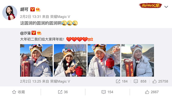 對(duì)于如此適合看冰雪比賽的利器,可以說(shuō)許多明星對(duì)此也愛(ài)不釋手,紛紛體驗(yàn)嘗鮮。其中就包括沙溢夫婦、劉敏濤、田亮等,都紛紛曬出了“榮耀MagicV”微博小尾巴,并呼吁大家一同為中國(guó)冰雪健兒助威打call。