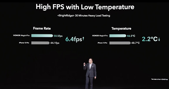 榮耀Magic4系列搭載高通驍龍8移動(dòng)平臺(tái),得益于榮耀與高通的深度合作,Magic4系列還成為業(yè)內(nèi)首款支持游戲AI超級(jí)渲染的手機(jī),玩大型游戲保持高幀的前提下,功耗和溫度都更低。