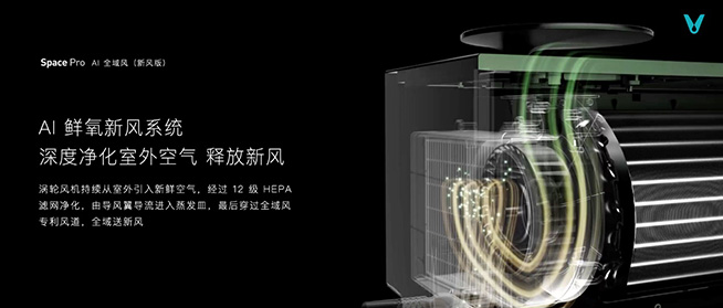 隨著人們對健康關(guān)注度的不斷提高,室內(nèi)的空氣質(zhì)量問題也成為了消費者購買空調(diào)的關(guān)注點。Space Pro云米AI全域風空調(diào)(新風版)配有AI 鮮氧新風系統(tǒng),渦輪風機持續(xù)從室外引?新鮮空?,經(jīng)過12 級HEPA濾?凈化,由導?翼導流進?蒸發(fā)皿,最后穿過全域?專利?道,深度凈化室外空?,釋放新?。60m3/h 超?新?量,快速增氧,1小時全屋換新風。除臭除異味的同時,又能保證室內(nèi)空氣含氧量,就算室內(nèi)人再多也不怕悶。