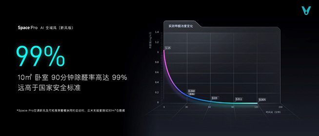 針對影響家庭空氣質(zhì)量的一大元兇——甲醛問題,Space Pro用活性錳催化除甲醛,將甲醛徹底分解成無害的水、二氧化碳,無二次污染。10㎡ 臥室90分鐘除醛率?達99%,遠?于國家安全標準,讓家人的每一口空氣,都吸得沁心入脾,安全放心。