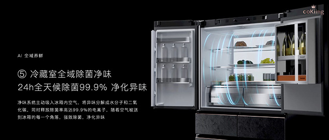 保鮮珍稀食材,對冰箱的分區(qū)、精準控溫/濕、無菌以及環(huán)境穩(wěn)定性要求很?。Royal Pro?端AI雙屏冰箱的AI全域養(yǎng)鮮,專為珍稀?材儲鮮設(shè)計,具有五大高端特性:①-32℃深冷速凍,鎖住細胞活性,延長食材的最佳賞味期;②-15℃~5℃雙獨?寬幅變溫艙,定制食材儲存專屬溫度;③設(shè)置臻愛母嬰艙,恒溫儲存母嬰食材;④還配備了果蔬除菌艙,以90%高保濕度鮮養(yǎng)果蔬;⑤冷藏室的全域除菌凈味系統(tǒng),能24h全天候除菌99.9%,凈化異味。