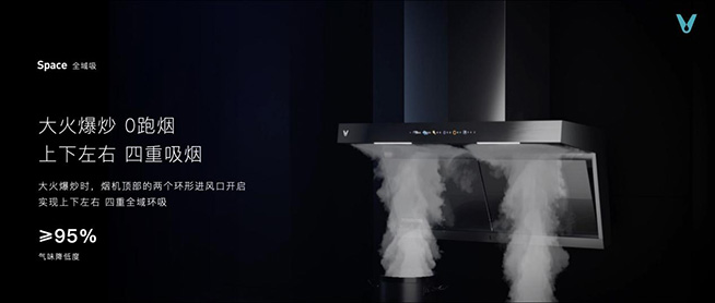 Space云米AI智目油煙機: 顛覆傳統(tǒng)吸煙原理,四面八方不跑煙