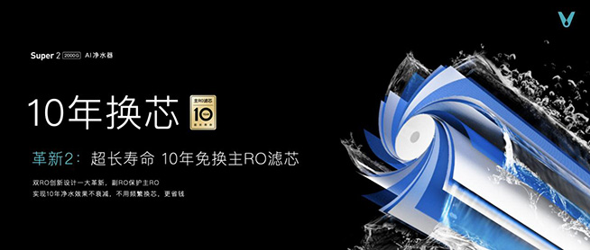 Super2 2000G云米·泉先AI凈?器:10年穩(wěn)定澎湃凈水,高效去農(nóng)殘