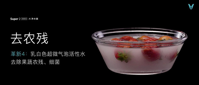 值得一提的是,Super2 2000G創(chuàng)新的乳白色超微氣泡活性水,能達到去農(nóng)殘率超95%,有效去除果蔬中的農(nóng)殘、激素、防腐劑。在清洗海鮮時,更能達到99%除菌率,有效去除海鮮中的細菌、有害添加劑,還原鮮甜本味。