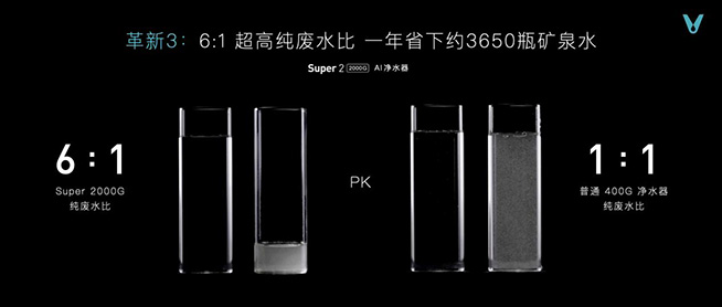 不止于大通量,Super2 2000G還突破性使用雙RO創(chuàng)新設(shè)計,副RO保護主RO,實現(xiàn)10年凈?效果不衰減,10年免換主RO濾芯,省錢又省心。而且還能10年穩(wěn)定凈水,水量不衰減。而6:1 超?純廢水比,更能?年省下約3650瓶礦泉?。