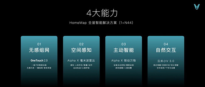 HomeMap具有的4大能力:無感組網(wǎng)、主動智能、空間感知、自然交互,讓家成為一個整體,讓智能家居設(shè)備具有“思考”能力。