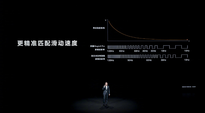除了針對護(hù)眼的不同解決方案之外,其實(shí)不同廠商對LTPO技術(shù)的算法優(yōu)化,也頗為重要。此前有消費(fèi)者專門挑有LTPO技術(shù)的機(jī)型入手,但體驗(yàn)下來有的會(huì)抱怨并不省電,有的則會(huì)吐槽手機(jī)有時(shí)候會(huì)卡頓。一些早期入手小米12 Pro的用戶反饋,其LTPO動(dòng)態(tài)自適應(yīng)高刷新率在切換App時(shí),仍有不順滑或卡頓感,由此可知,對大量軟件的適配和細(xì)節(jié)調(diào)優(yōu),是算法團(tuán)隊(duì)更大的挑戰(zhàn)。榮耀Magic4系列的動(dòng)態(tài)刷新率調(diào)整,結(jié)合大量用例反復(fù)打磨,實(shí)現(xiàn)了刷新率變化曲線與用戶觸控滑動(dòng)速度的變化精準(zhǔn)匹配。相較于一些安卓手機(jī)割裂的動(dòng)態(tài)刷新率體驗(yàn),榮耀Magic4系列真正能讓整個(gè)過程非常流暢和舒適。