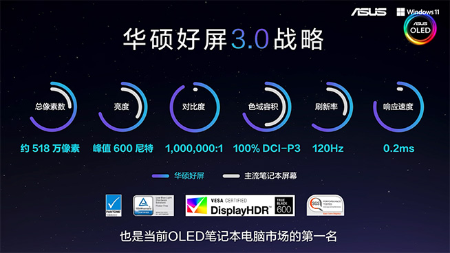 2021年,基于對市場變化趨勢與消費者的需求洞察,華碩重磅推出“華碩好屏”戰(zhàn)略,將OLED屏率先引入全產(chǎn)品線。這是區(qū)別于傳統(tǒng)筆電以大尺寸、高分辨率為主的屏幕新業(yè)態(tài),其更注重為用戶提供行業(yè)領(lǐng)先的顯示效果,讓更多用戶在屏幕色彩、亮度、對比度等方面擁有沉浸式的使用體驗。事實上,“華碩好屏”不僅讓更多用戶擁有了享受優(yōu)質(zhì)視覺觀感的權(quán)利,同時也革新了整個筆記本電腦屏幕市場。