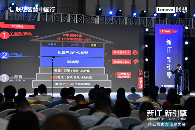 5月28日,2022南方信息大會在廣州舉行,多位華南制造業(yè)知名公司高管和數(shù)百位IT負責(zé)人親臨會場,在線上線下一起探討企業(yè)智造的數(shù)字化創(chuàng)新發(fā)展大計。聯(lián)想積極參與本次大會,與眾多CIO共聚一堂,同時舉辦了聯(lián)想智慧中國行廣州站活動,并在會上展示了在智能制造方面的最新成果。應(yīng)大會邀請,聯(lián)想中國副總裁、華南大區(qū)總經(jīng)理袁帥青在會上做了專題演講。